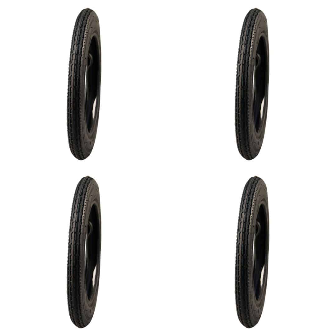 Set van 4 buiten en binnenbanden in de maat (62-203) 12½x1.75×2¼. Deze voordeelset heeft een fietsband profiel. Het rubber heeft nylon er door verwerkt, wat deze set extra stevig maakt. U kunt kiezen uit 3 verschillende ventielen. Atuoventiel recht, of gebogen. Of zelfs met een fietsventiel. Met dit fiets ventiel kunt u de band oppompen met de fietspomp. U kiest tijdens het bestellen. Deze maat banden wordt gebruikt voor kinderfietsen, kinderwagens en nog veel meer. Zo lang deze maat nu op uw buitenband staat, dan past deze set.