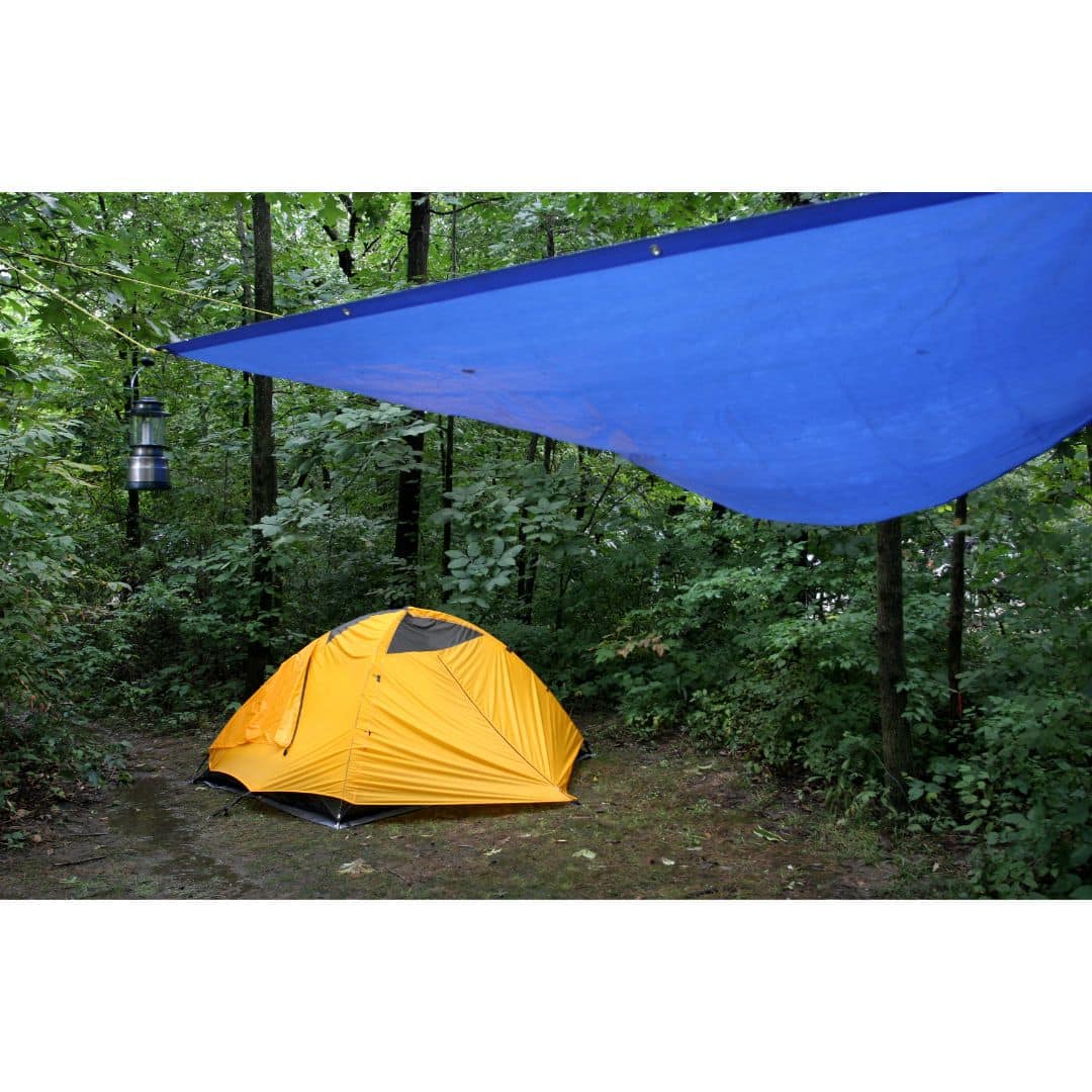 Het zeil helpt je spullen te beschermen tegen regen, vuil en zon, en is eenvoudig vast te zetten dankzij de metalen ringen rondom.