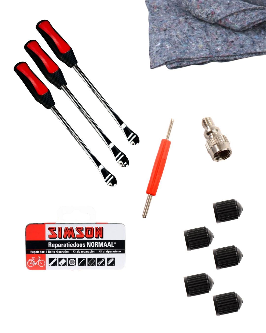 Deze montagekit is een handige hulp bij het vervangen van banden van kruiwagens, steekwagens, karren, bollenkarren, skelters en kinderwagens. Ook geschikt voor kleinere wieltjes en bandjes zoals van een kinderwagen of bolderkar.
