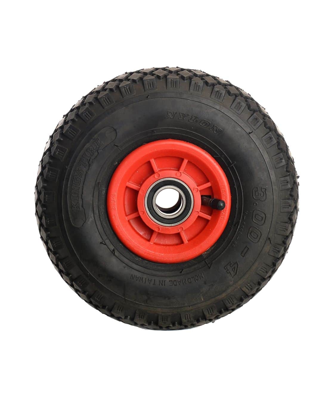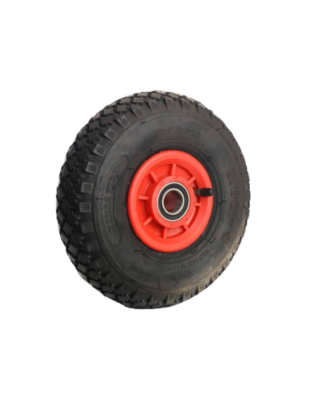 De bandenmaat 3.00-4 zorgt voor een compacte maar stabiele rol, en met de 4PR opbouw heb je een band die tegen een stootje kan en niet snel inzakt bij belasting. Het wiel is geschikt voor gebruik tot 110 kg, waardoor hij prima inzetbaar is voor dagelijks gebruik.